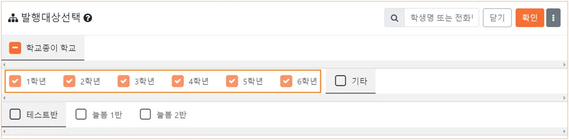 학급구조에서 학년명을 “기타”로 설정하는 경우