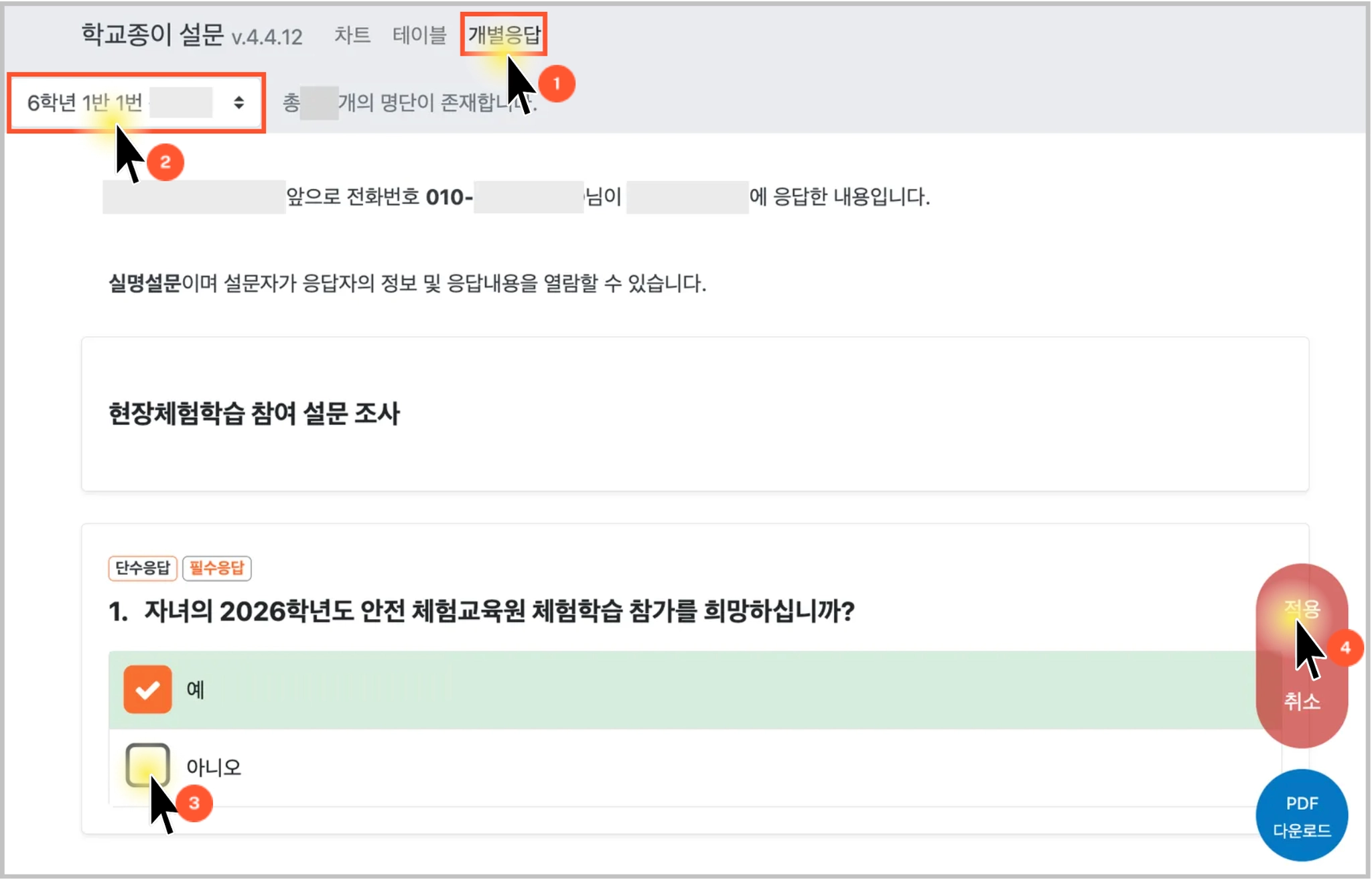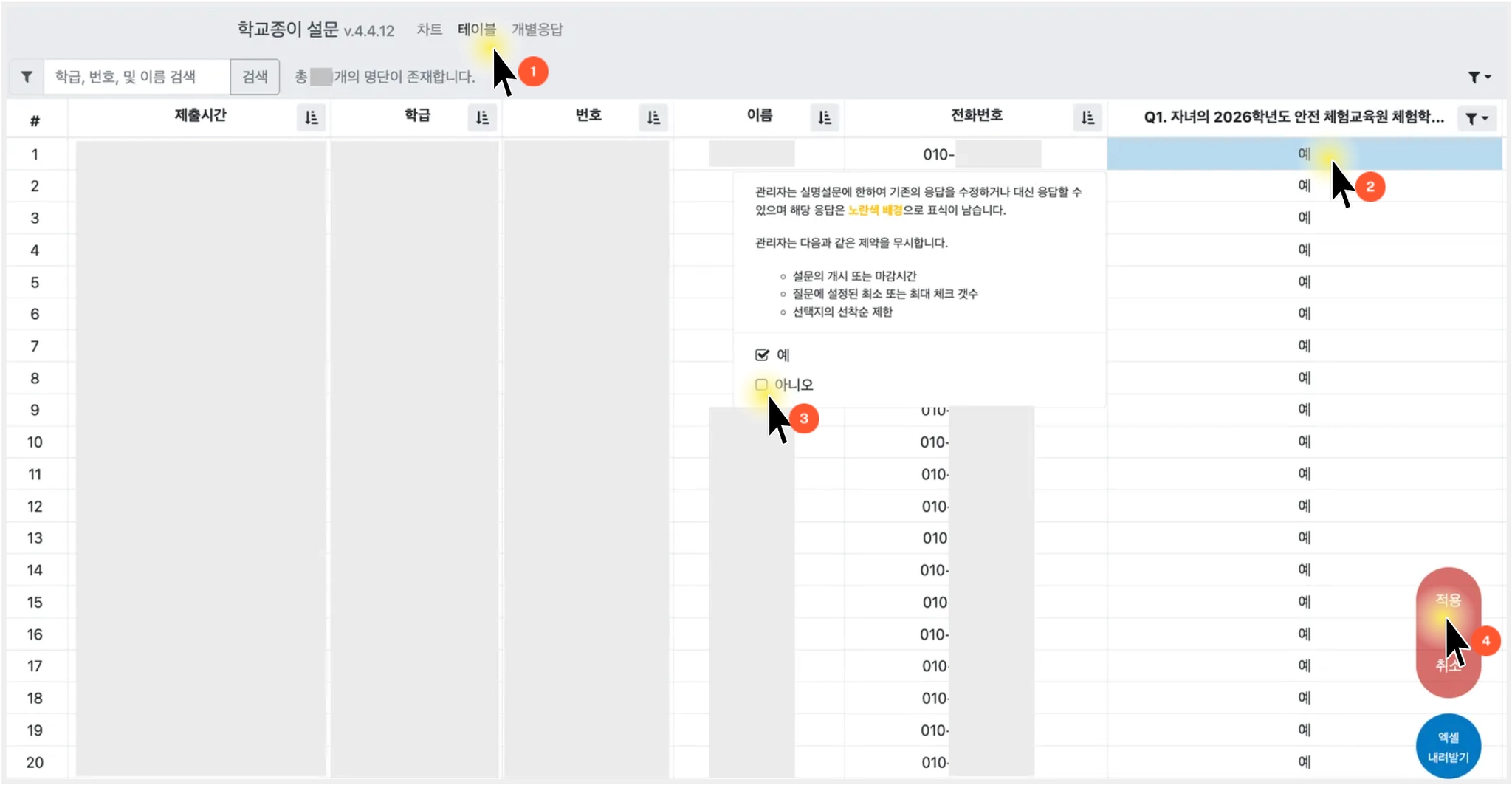 학부모님의 설문 응답 내용을 선생님이 직접 수정해주시는 방법