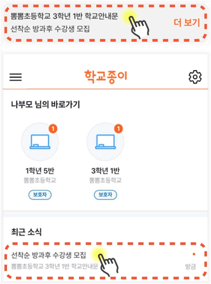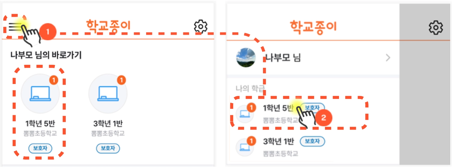 2. 두 자녀가 같은 학급일 경우 (예 : 쌍둥이 자녀 모두 1학년 5반)