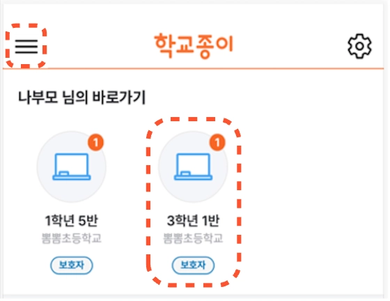 좌측 상단 삼선 버튼 > 나의 학급에서 응답할 학급을 선택합니다.