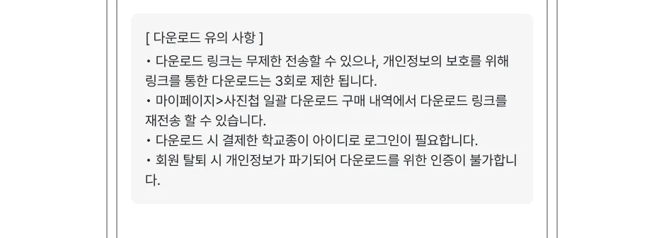 이 서비스는 학급 내 사진첩 형식의 게시판에 한정되며, 결제 시간 기준으로 업데이트 된 데이터를 다운받습니다.