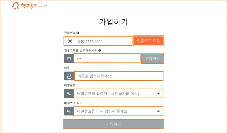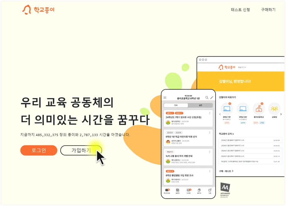 학교종이는 웹기반 앱 서비스로 웹페이지 또는 앱(어플)에서 회원가입이 가능합니다.