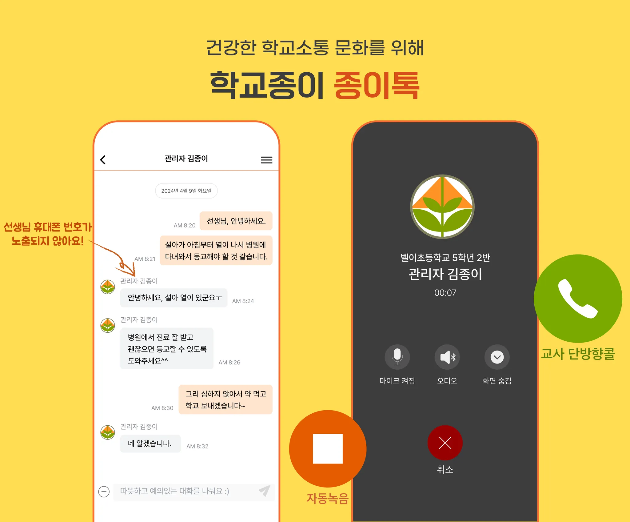 선생님께 맞춘 통화하기로 소통의 격이 올라갑니다.