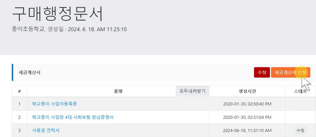 세금계산서 학교종이에 요청