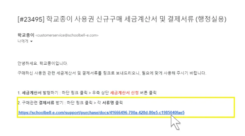 학교종이에서 발송된 이메일 > 2. 구매관련 결제서류 받기 > 하단 링크 클릭