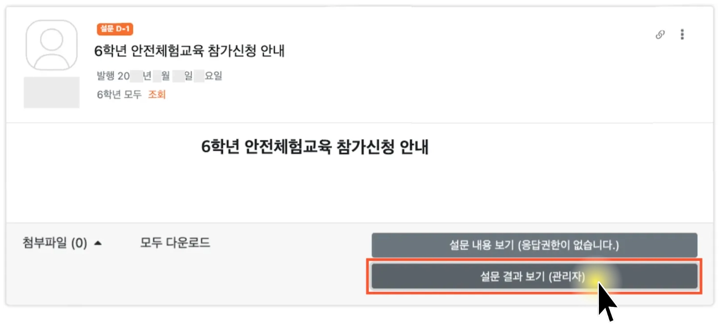 학교종이 관리자 / 설문글 작성자: 학교페이지에서 발행 대상 전체에 대한 설문 결과 확인 가능