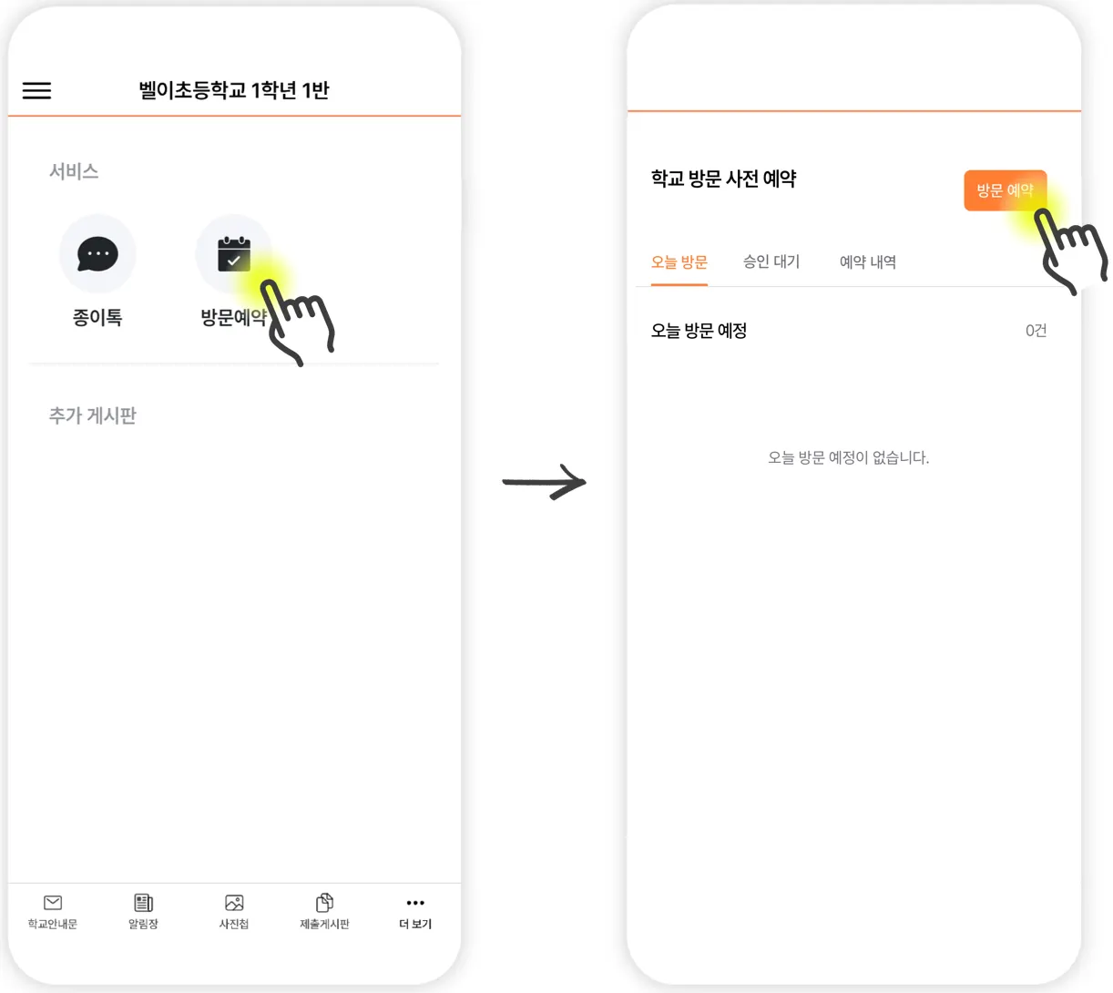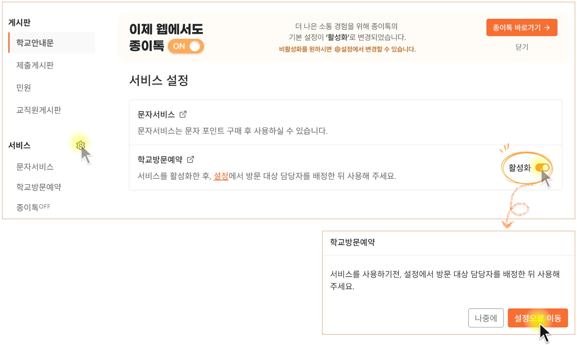 학교 방문 예약 서비스는 학교관리자가 먼저 방문 예약을 활성화해야 사용할 수 있습니다.