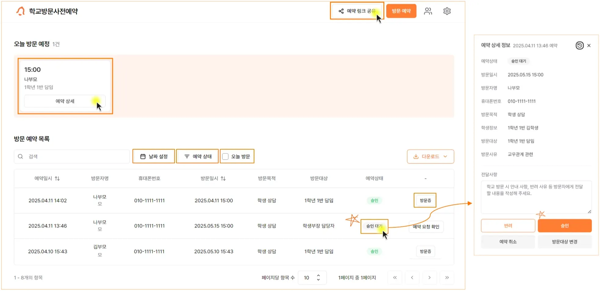 기본 설정이 완료되면, 담임 선생님께서 직접 예약을 관리하실 수 있어요.